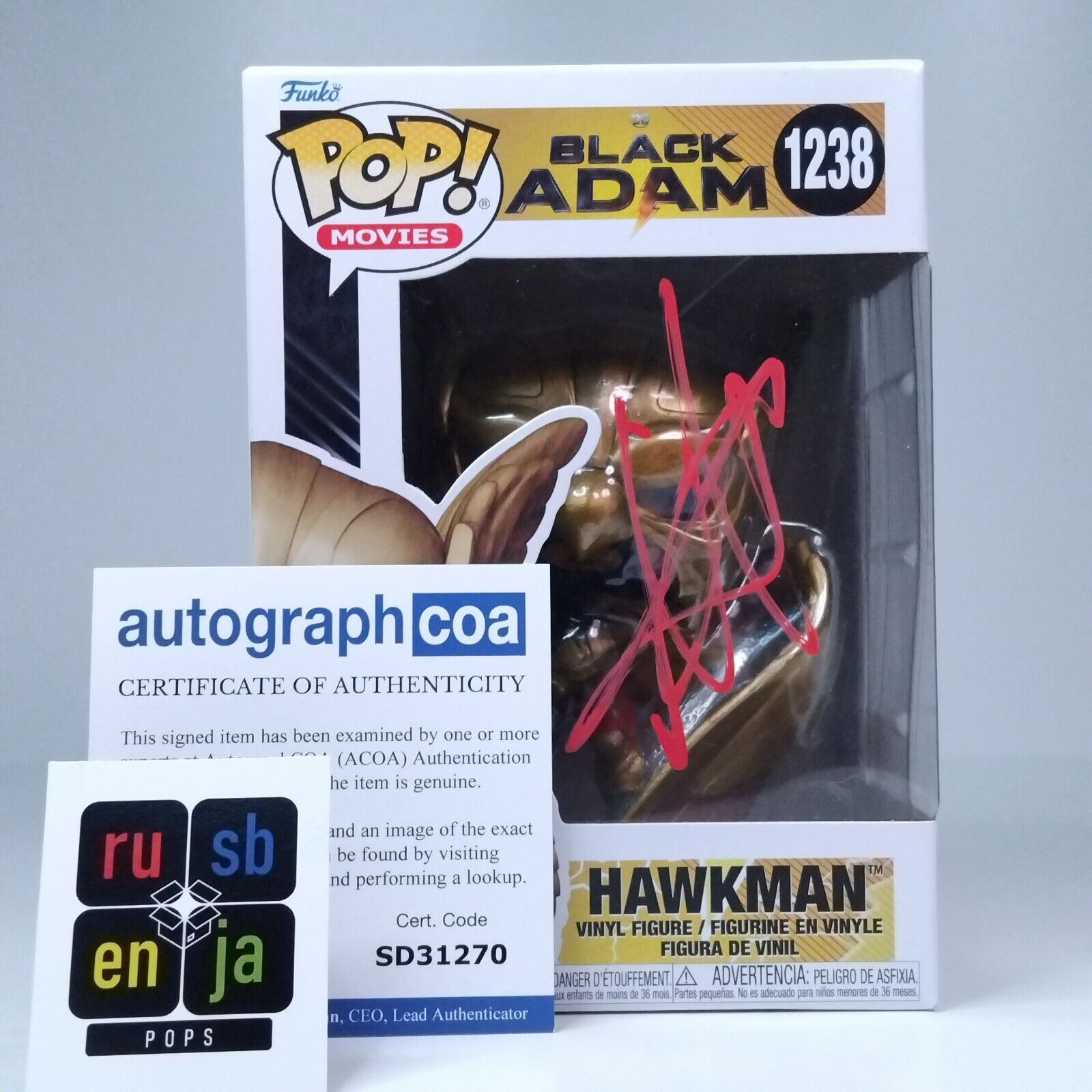 Funko Pop! DC Heroes Black Adam Hawkman Signed Aldis Hodge COA #1238 WS